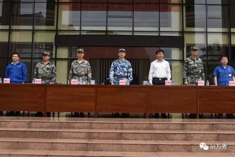 4月12日上午,万秀区2018年度基干民兵点验大会在桂江船厂顺利召开。梧州军分区司令员张汉川,万秀区委书记蓝盛新,军分区战建处处长赵晓峰,万秀人武部政委陈献寿,中船桂江造船有限公司总经理曾令强以及梧州市民兵应急营营属连,万秀区民兵应急连,海上民兵修理1连、2连共310多人参加会议。大会由万秀区人武部部长曾庆文主持。